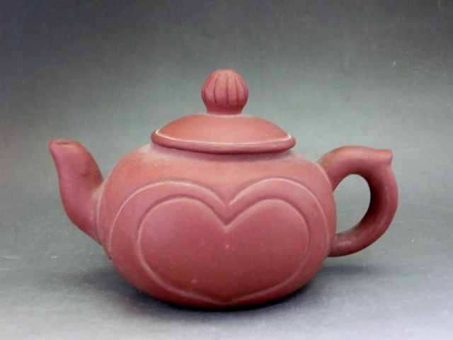 - 急須■朱泥 ハート型 中國宜興 後手茶器茶瓶 紫砂壺 煎茶器 茶壷 古玩 唐物 中国 古美術 時代物 骨董品 希少■