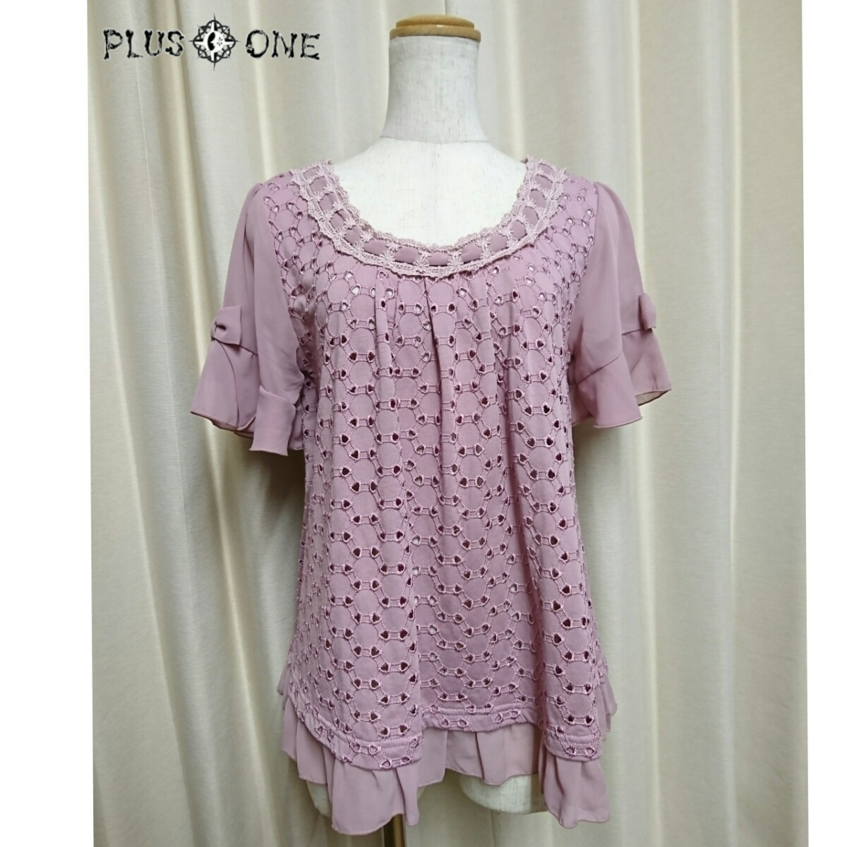 - 【axes femme】シフォン袖プルオーバー ピンク / アクシーズ カットワーク刺繍 カットソー