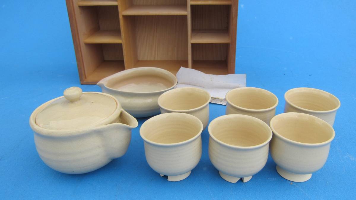 - 萩焼 萩城窯 宝瓶 湯呑 湯冷まし 煎茶器セット 共箱 煎茶道具 骨董品と思います