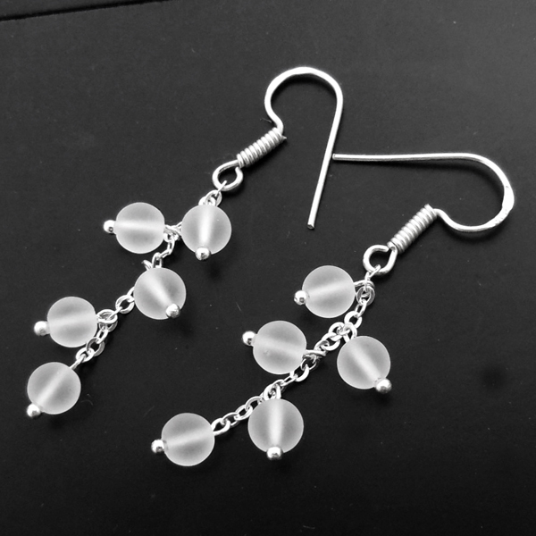 - 砂糖菓子みたい♪マット仕上げ水晶 シルバー製フリンジピアスAU *大人可愛い(*^_^*)*