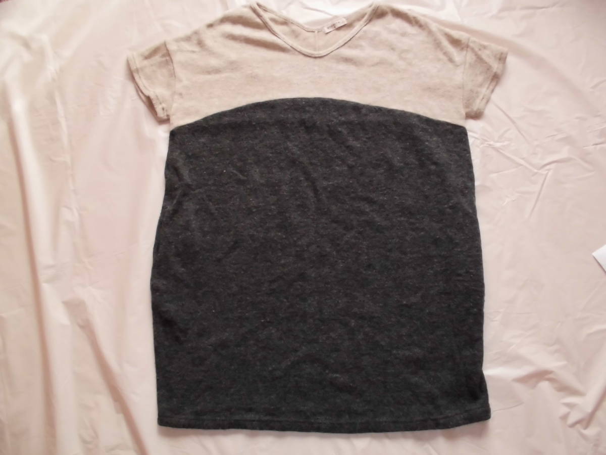 > 超美品★accrocher★ベージュ×グレーの可愛いニットチュニック★Mサイズ半袖ニット★ゆったりデザイン可愛いです★