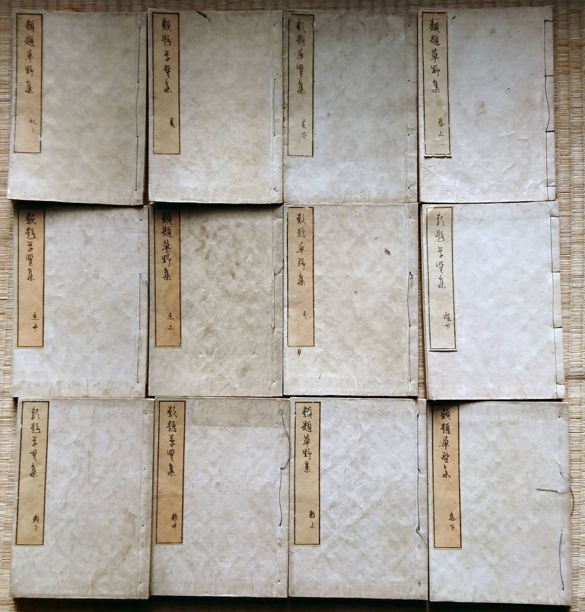 > f18121101〇類題草野集 全12冊揃 春上・下、夏、秋上・下、冬、恋上・中・下、雑上・中・下 文化14年 木版摺 和本 古書 古文書