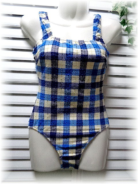 - Peter Pan 日本製 ワンピース水着 9号/M サッカー生地 ブルーチェック