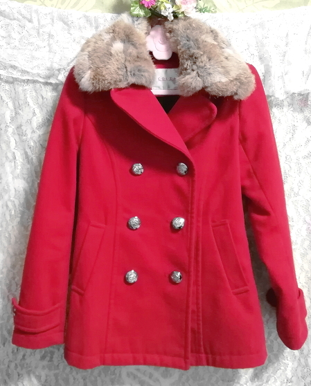 > 赤レッド亜麻色ラビットファーロングコート/外套/アウター Red flax color rabbit fur long coat mantle