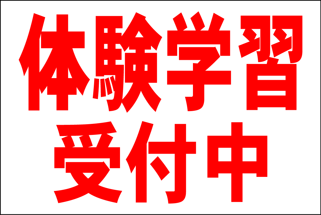 - シンプル看板 「体験学習受付中(赤)」Lサイズ <スクール・塾・教室> 屋外可(約H60cmxW91cm)