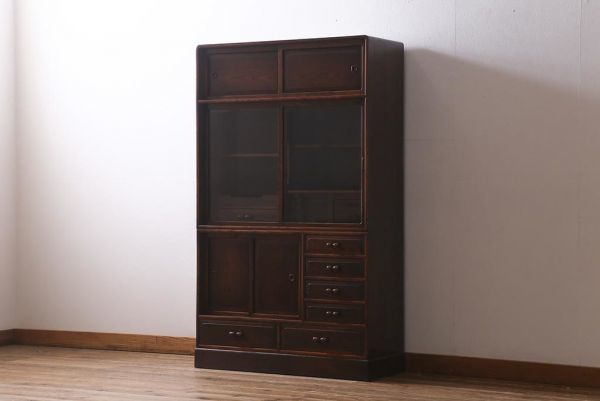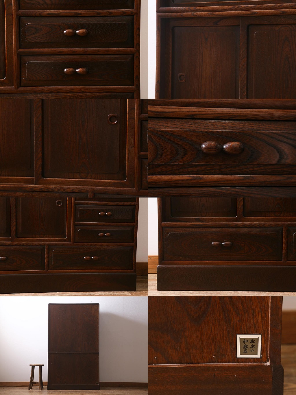 > R-040295 中古 高級品 工芸家具 ケヤキ材 漆塗り しっとりとした佇まいの上品な茶箪笥(定価48万円)(飾り棚、収納棚)(R-040295)