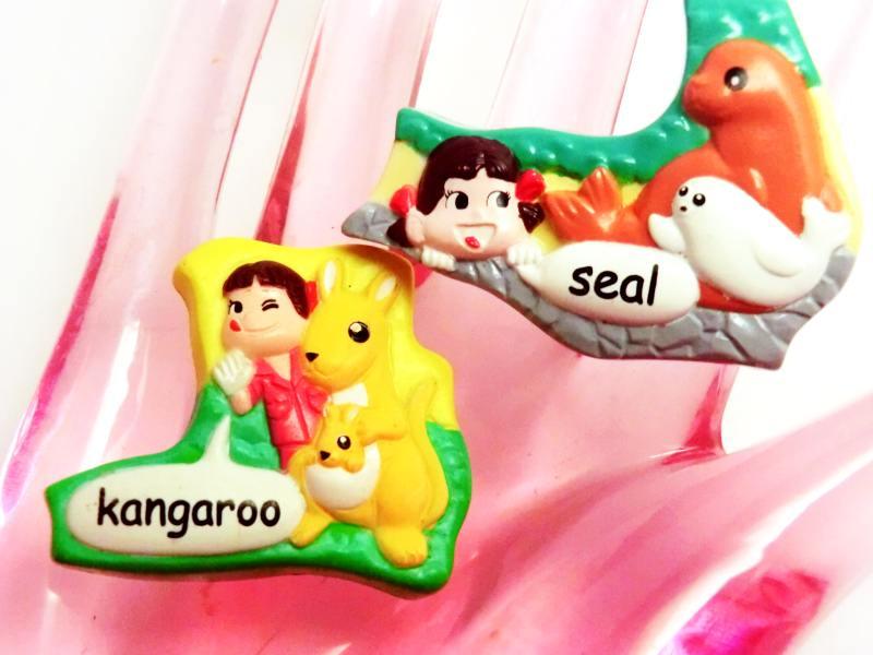 - 【懐かし・レア!】2000年発売 不二家 ミルキーおまけ ペコちゃん あつめてマグネット 第3弾 英語 動物 アザラシ&カンガルー 絶版