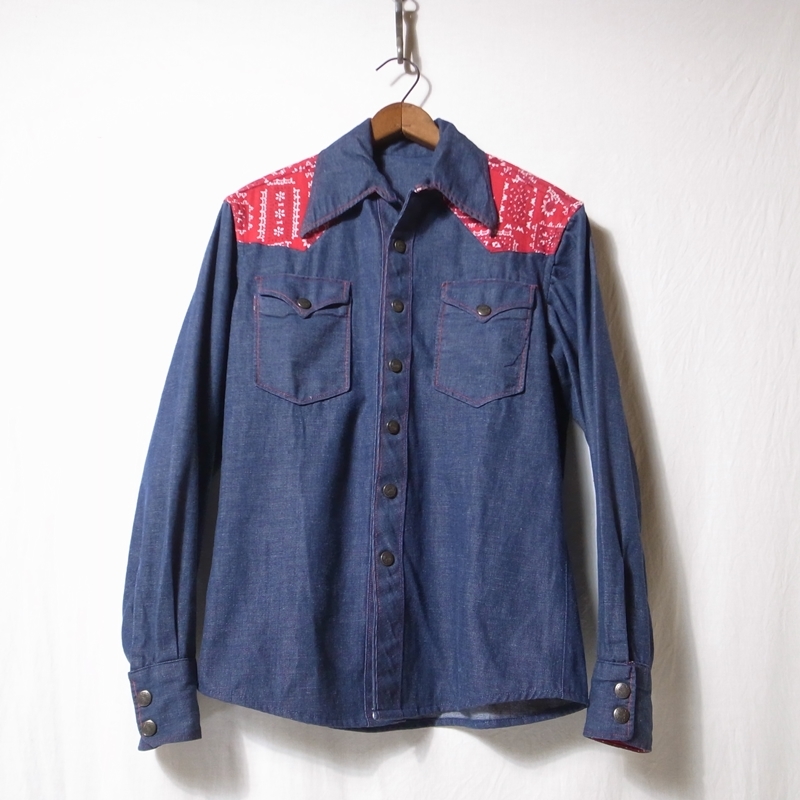 > 70s ヴィンテージ バンダナ柄 デニム シャツ ジャケット / ペイズリー ヒッピー FAST COLOR
