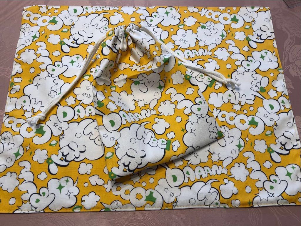 - No.346 裏付ランチョンマット&巾着 ハンドメイド 35x45