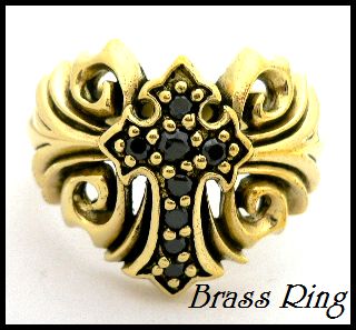 - 真鍮製Brassブラックジルコニア付エタニティ クロス ブラス リング/17号ラスト1個