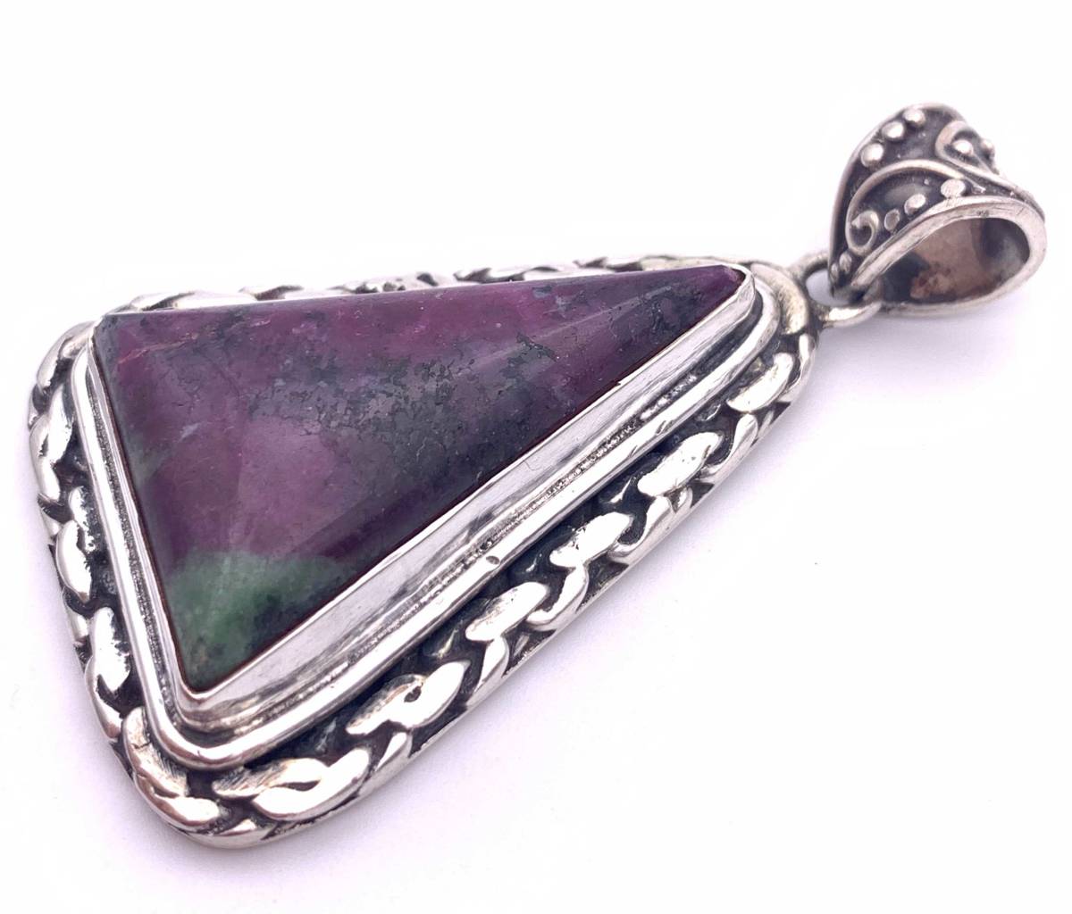 - 天然石ルビーゾイサイトsilver925トップ/HANDMADE-06