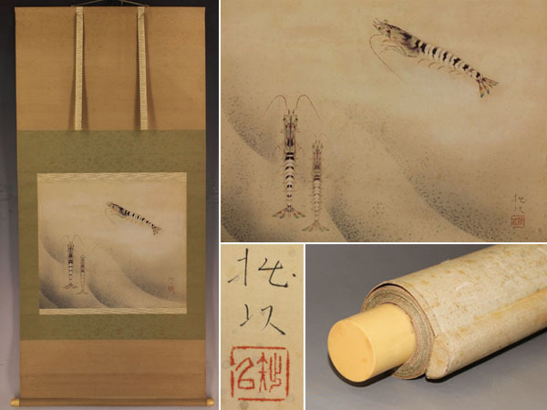- 名品【真作】川上拙以【水中自得】◆絹本◆共箱◆二重箱◆掛軸 y03086