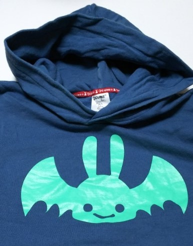- CUNE キューン プルオーバー パーカー ブルー 『悪魔』 前&袖プリント L・身幅約60cm ピロピロ付き※USED品/2~3度使用/2014年ごろのモデル