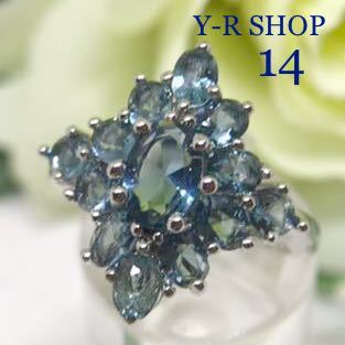 > 送料無料★14号★ロンドンブルートパーズたっぷりのゴージャスリング★レディース指輪シルバー刻印あり新品宝石Y-R カラーストーン