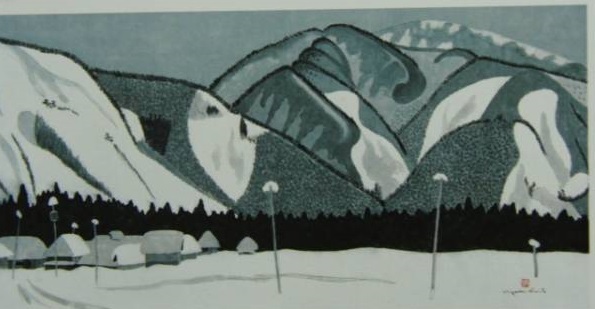 - 斎藤清、会津の冬、若松上三寄、希少画集画、新品額装付、mai