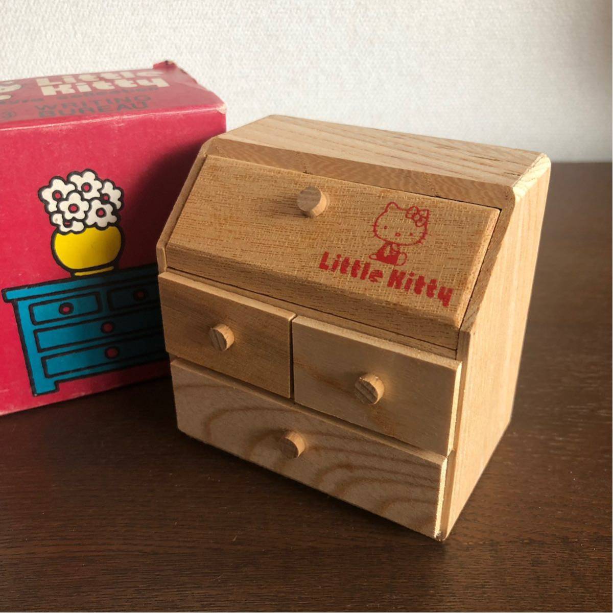 > ☆ハローキティ☆リトルキティ ミニチュアコレクション 103 WRITING BUREAU 木製チェスト 昭和レトロ 家具 当時物 箱付き 旧ロゴ サンリオ