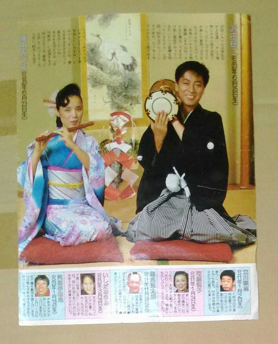 > 沢田研二高田みづえ立川談志市原悦子里見浩太朗いしだあゆみ笑福亭鶴光真田広之岸本加代子切り抜き1枚