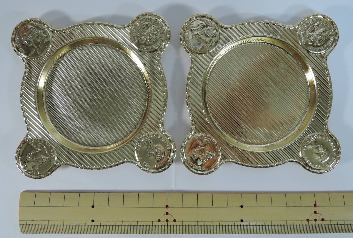 - 02E 昭和レトロ■鉄製 コースター 2個■イギリス・ペニー/アメリカ・セント/フランス・フラン/ドイツ・マルク