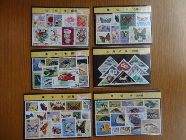 - [外国切手] 蝶切手(30枚)、花切手(10枚)、三角切手(10枚)、魚切手(30枚) [1960~1970年代初期]
