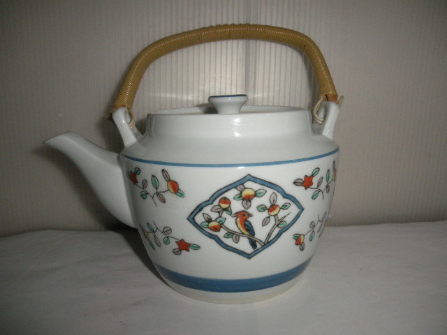 - @@@ 昭和レトロ 有田焼 茶道具 急須 きゅうす 鳥 桃 桃の絵図 色絵