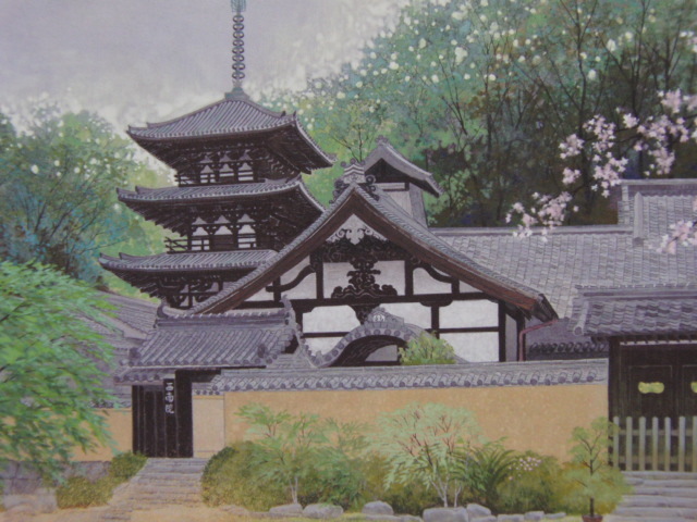 - 並木功、「當麻寺」、希少な画集より、 新品高級額装付、状態良好、送料込み、日本人画家、coco