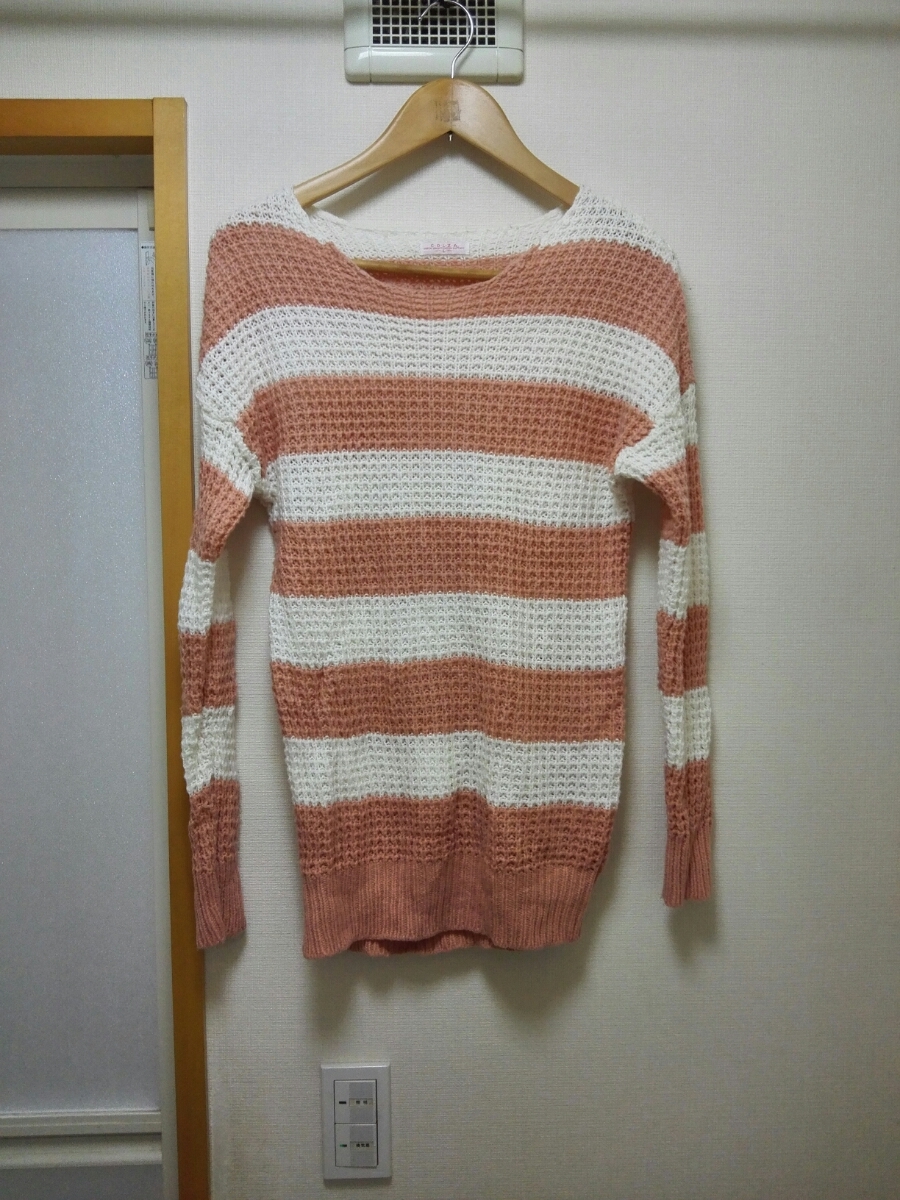 - COLZA ボーダー柄 ロングアクリルニットセーター L