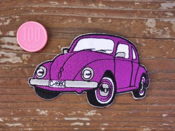 - 【送料無料】アイロンワッペン フォルクスワーゲン むらさき色 ワーゲン ビートル VOLKSWAGEN アップリケ