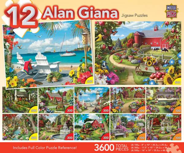 - MASx12-31535●12点 ジグソーパズル 米国輸入 太陽の光が降り注ぐ海辺、花々が咲き乱れる庭園の小道、赤い納屋のある農場、静かな森