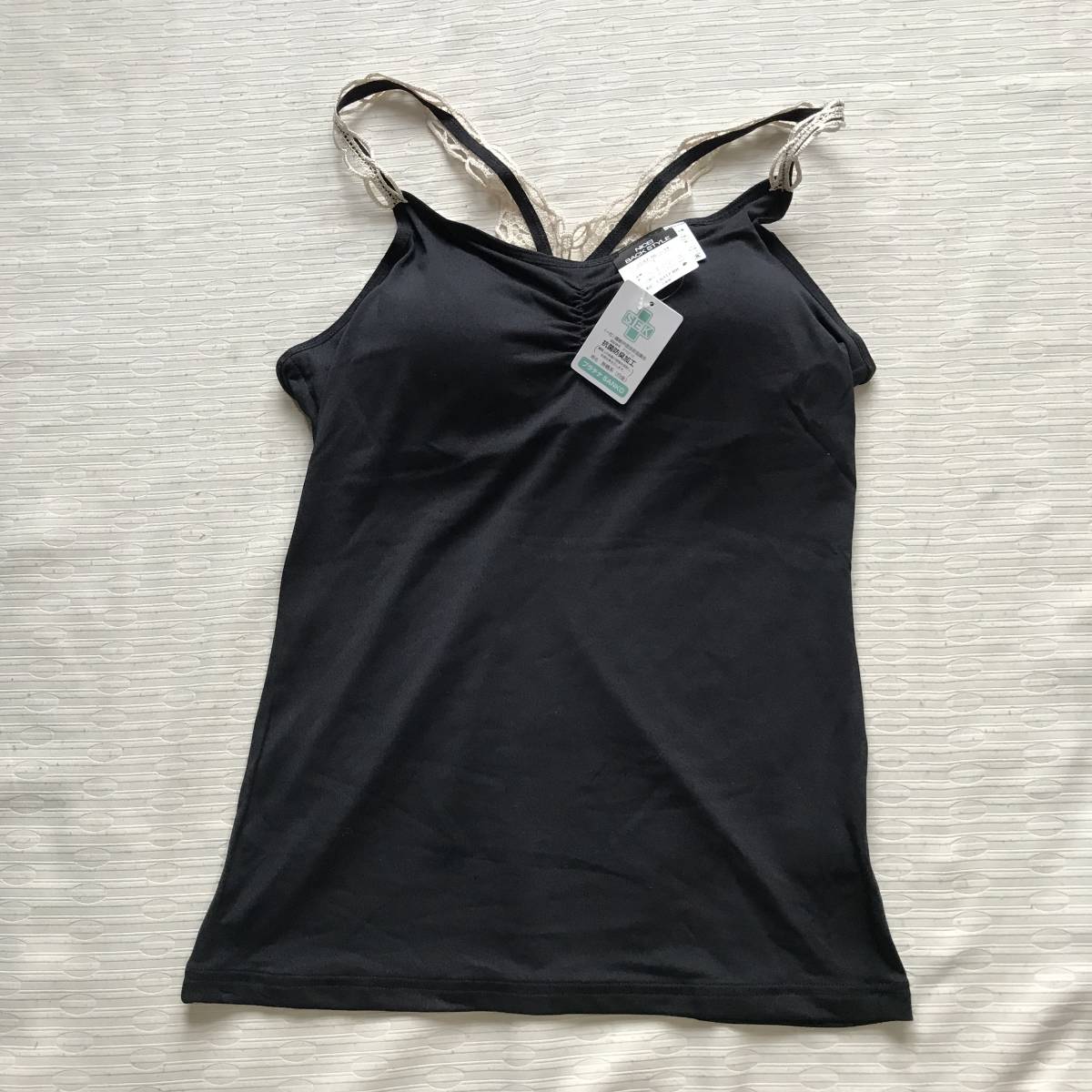 - ブラ付きキャミソール Lサイズ 黒色 バックスタイル綺麗 抗菌防臭加工★未使用