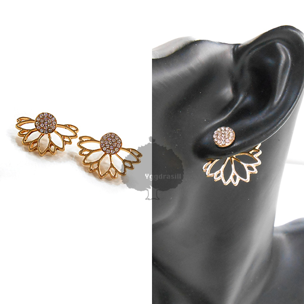 - フラワーキャッチ ラインストーン ピアス ゴールド 金 蓮の花 バックキャッチ ペア 両耳分 レディース