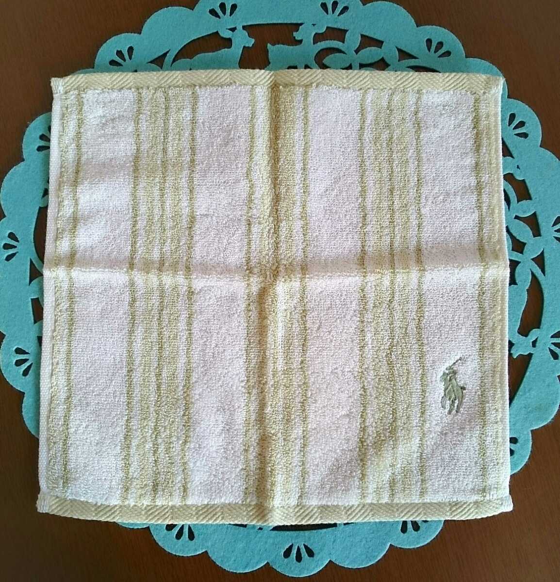 - 【新品・未使用!】POLO RALPH LAUREN ラルフ・ローレン ミニタオルハンカチ ライトグリーン アビゲイルストライプ柄 綿100% 約Ф27cm
