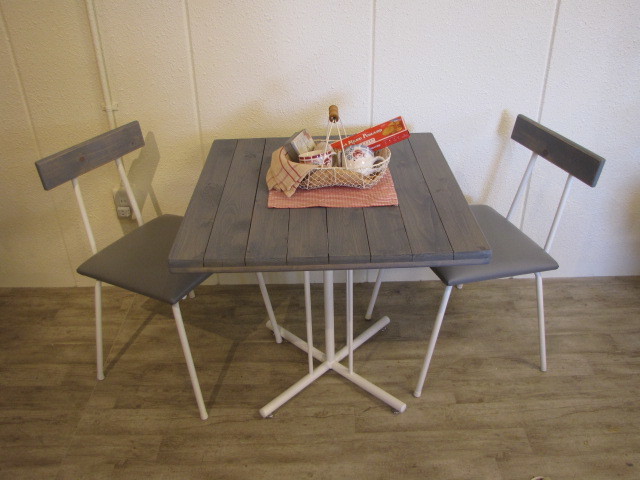 > テーブルセット パイン 無垢 シャビー 食卓 机 テーブル 正方形 ダイニングテーブル 3点セット おしゃれ 新生活に アイアン