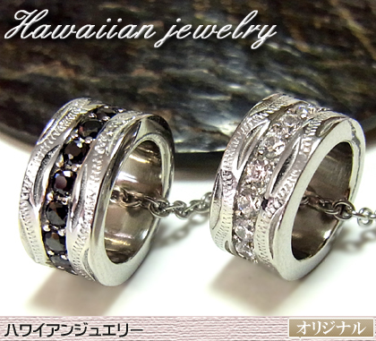 > ★アレルギー&温泉&海水浴ご使用OK★ハワイアンジュエリー★ステンレスペンダント★ブラック&クリアジルコニアエタニティー&カレイキニ