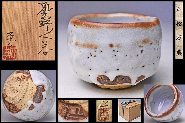 > 戸松万典 ★ 鼠志野ぐい呑 ★ 共箱 直筆共布 栞 ★ 程よい大きさで景色豊かな逸品 ★ 酒器 ★