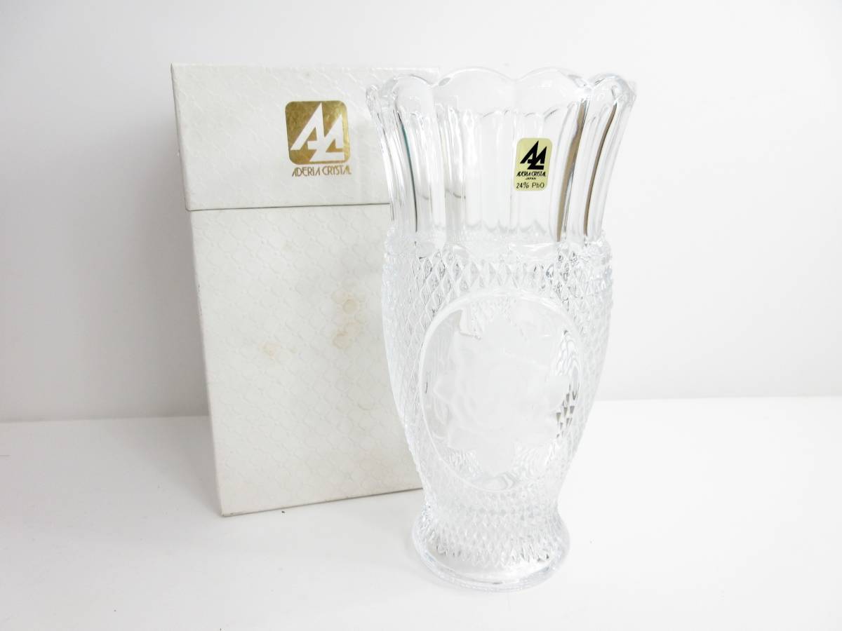 - 未使用品◆ADERIA CRYSTAL アデリアクリスタル 薔薇絵 花瓶 石塚硝子 管理2002 N-9