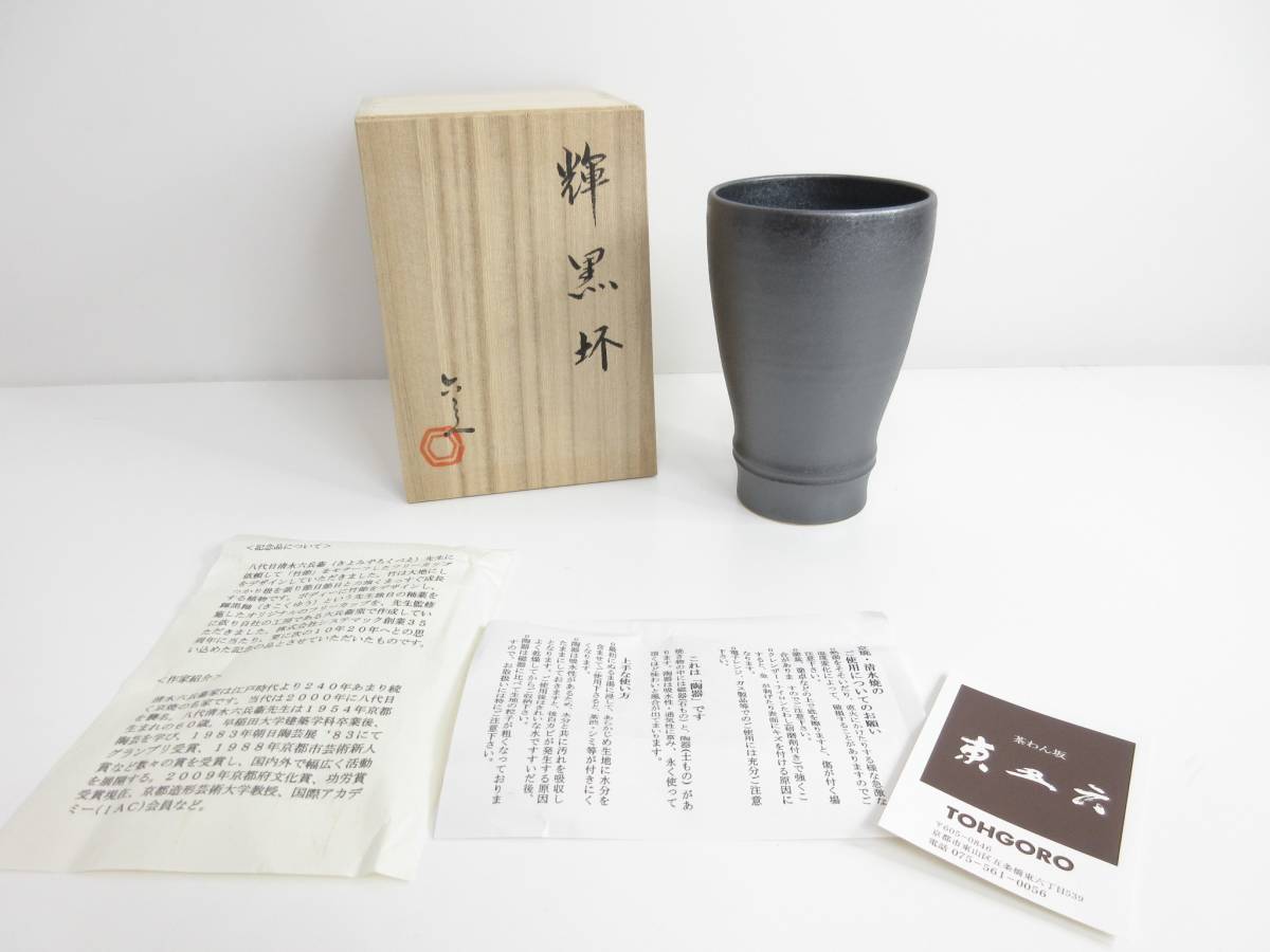 > 未使用品・激レア◆清水焼 京焼 八代目 清水六兵衛 輝黒杯 フリーカップ 陶器 記念品 (株)システマック 創業35周年 非売品 管理2002 P-1