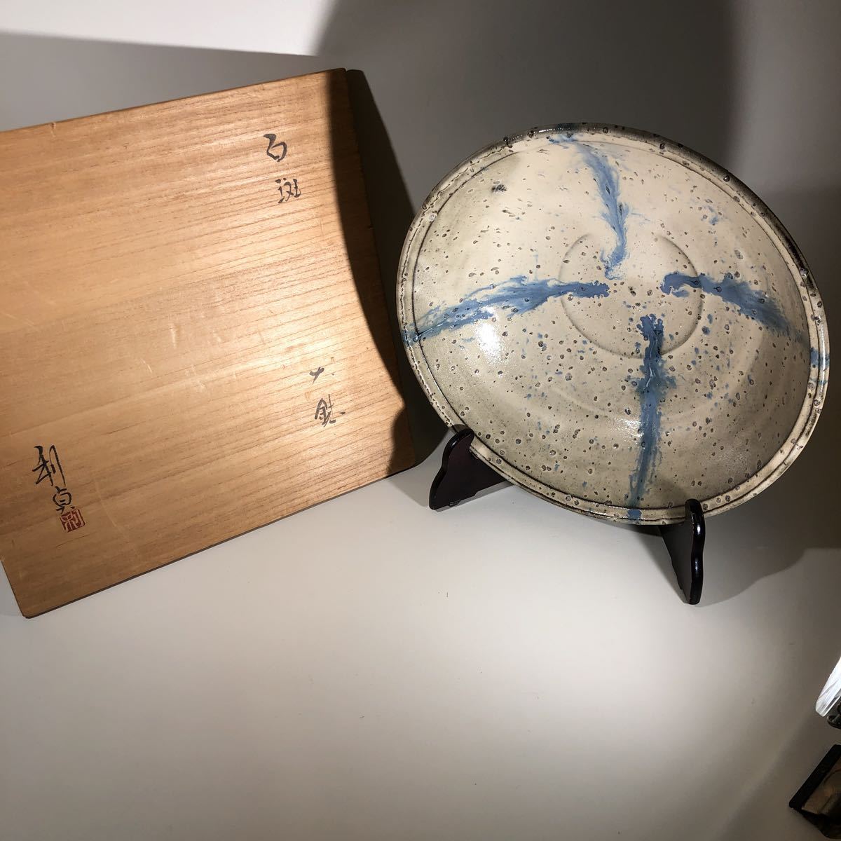 - 若尾利貞作 県無形文化財 白斑大鉢/共箱 志野大皿 888