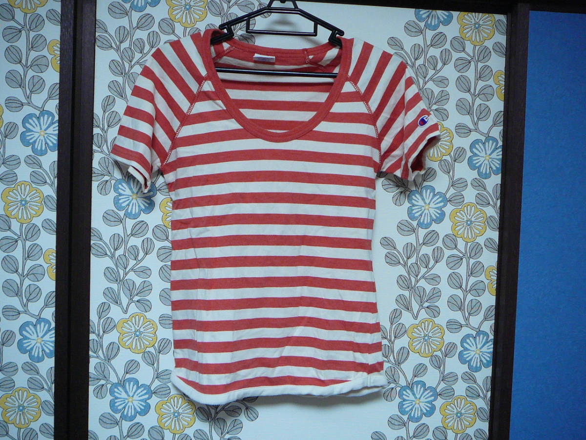 - チャンピオン Tシャツ S アカストライプ セレクトショップ購入(株)ゴールドウィン