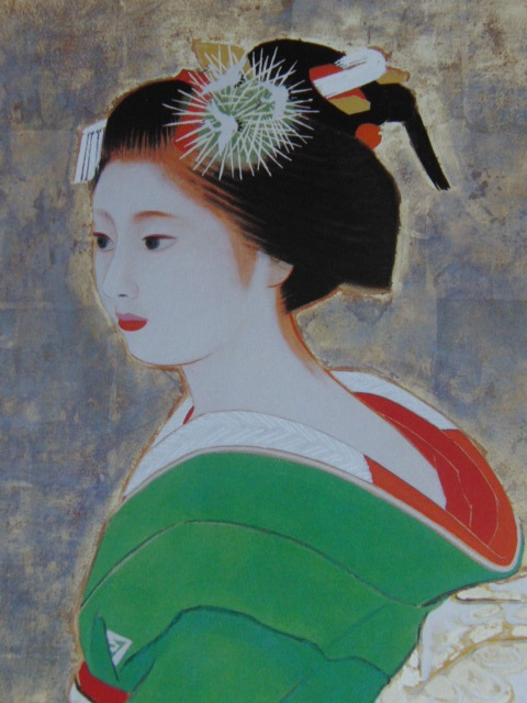 - 磯田又一郎、【先笄髷】、希少な額装用画集より、新品額装付、状態良好、送料込み