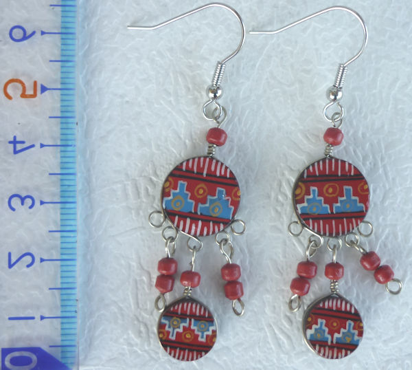 - 送料無料 ペルー ピアス PI-029-06 2段 円型 アンデス クスコ 陶器 インカ ビーズ 綺麗 可愛い ナスカ カラフル フォルクローレ衣装