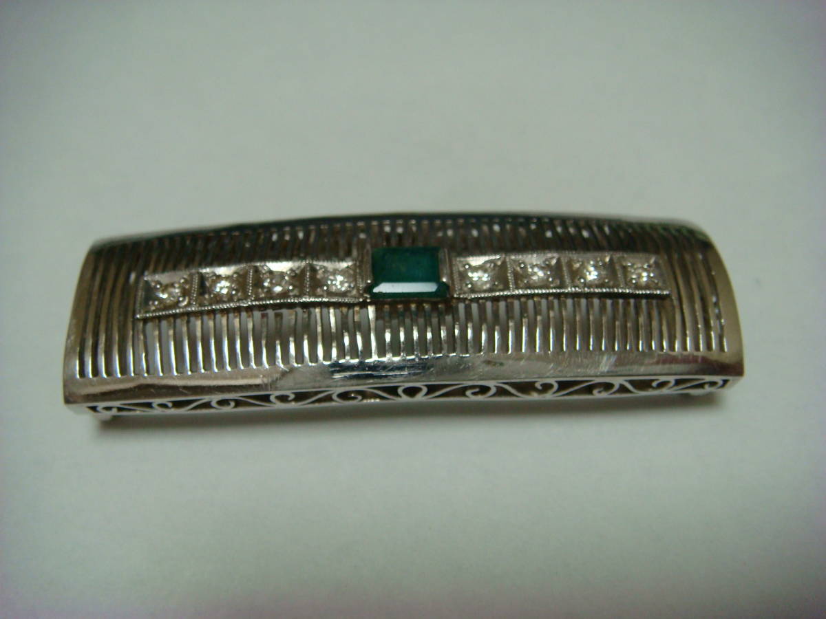 - ◇アンティーク ダイヤモンド エメラルド プラチナ製 帯留め◇