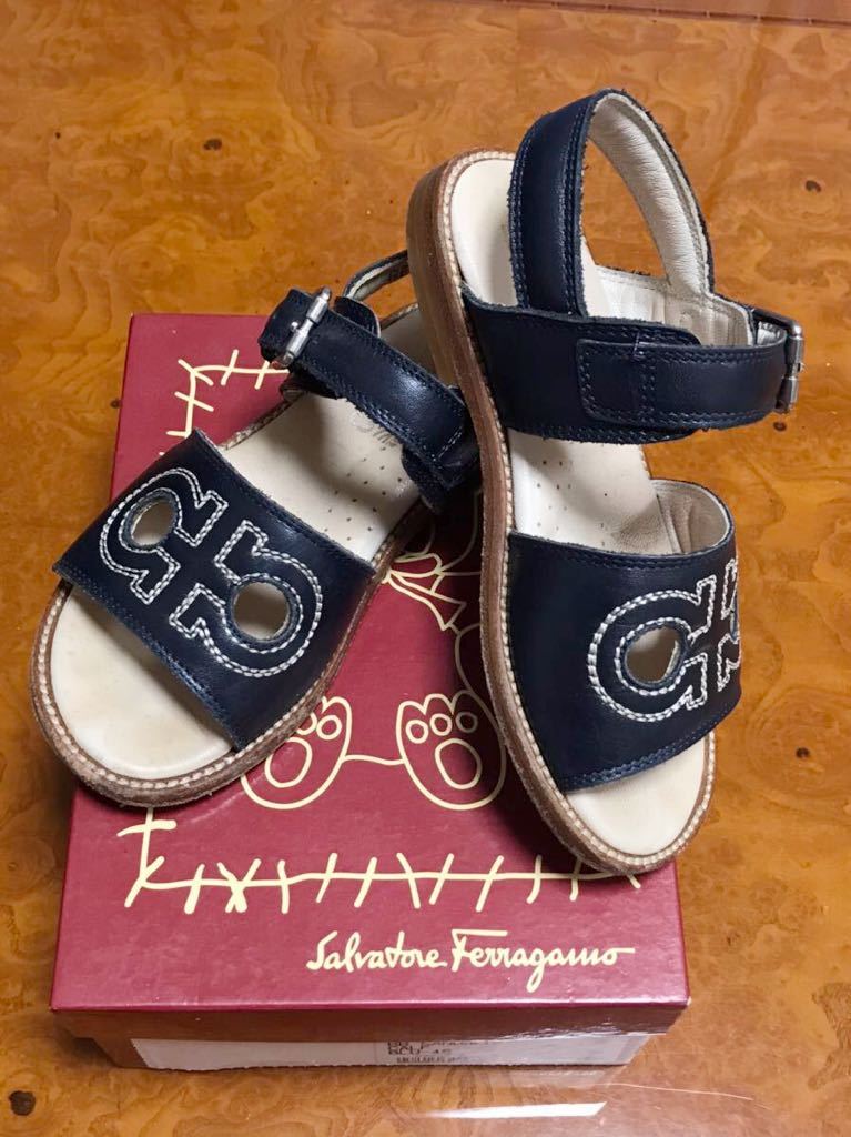 > ☆Salvatore Ferragamo サルバトーレ フェラガモ キッズ サンダル ヨーロッパ サイズ26 (16cmくらい)カーフスキン 濃紺☆