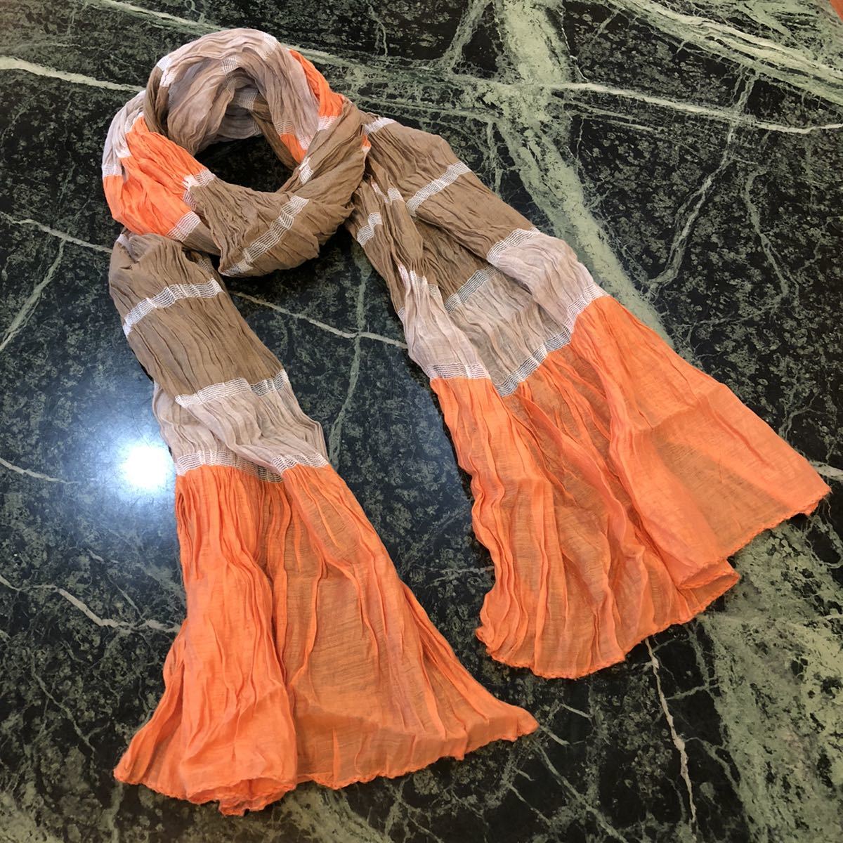 - 【美品】デザインストール★カジュアル オレンジ×ブラウン系 柔らか素材 シワ加工