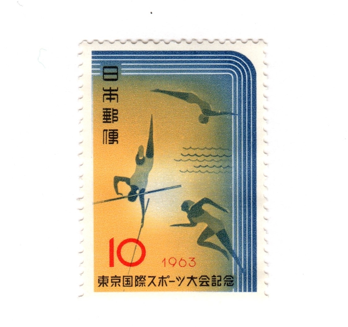 - 昭和38年1963「東京国際スポーツ大会記念/飛び込み・棒高跳び・短距離」10円切手・未使用【送料無料】「熊五郎の切手」00800286