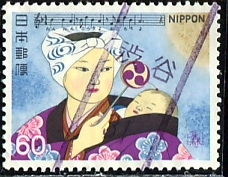 - □■《日本の歌シリーズ》1981年『子もり歌』60円切手・単片=使用済