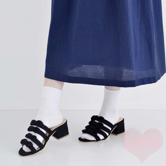 > merlot サンダル メルロー スエード 4連リボン ブラック 黒 リボン ペタンコ フラットシューズ サイズL 24cm 23.5cm