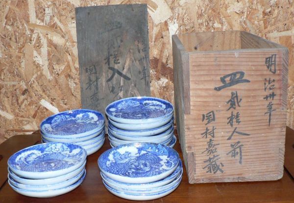 - 皿 まとめ売り ★検索用→ 印判 染付 呉須 食器 磁器 ちどり文 山水文 波文 花文 龍文 明治