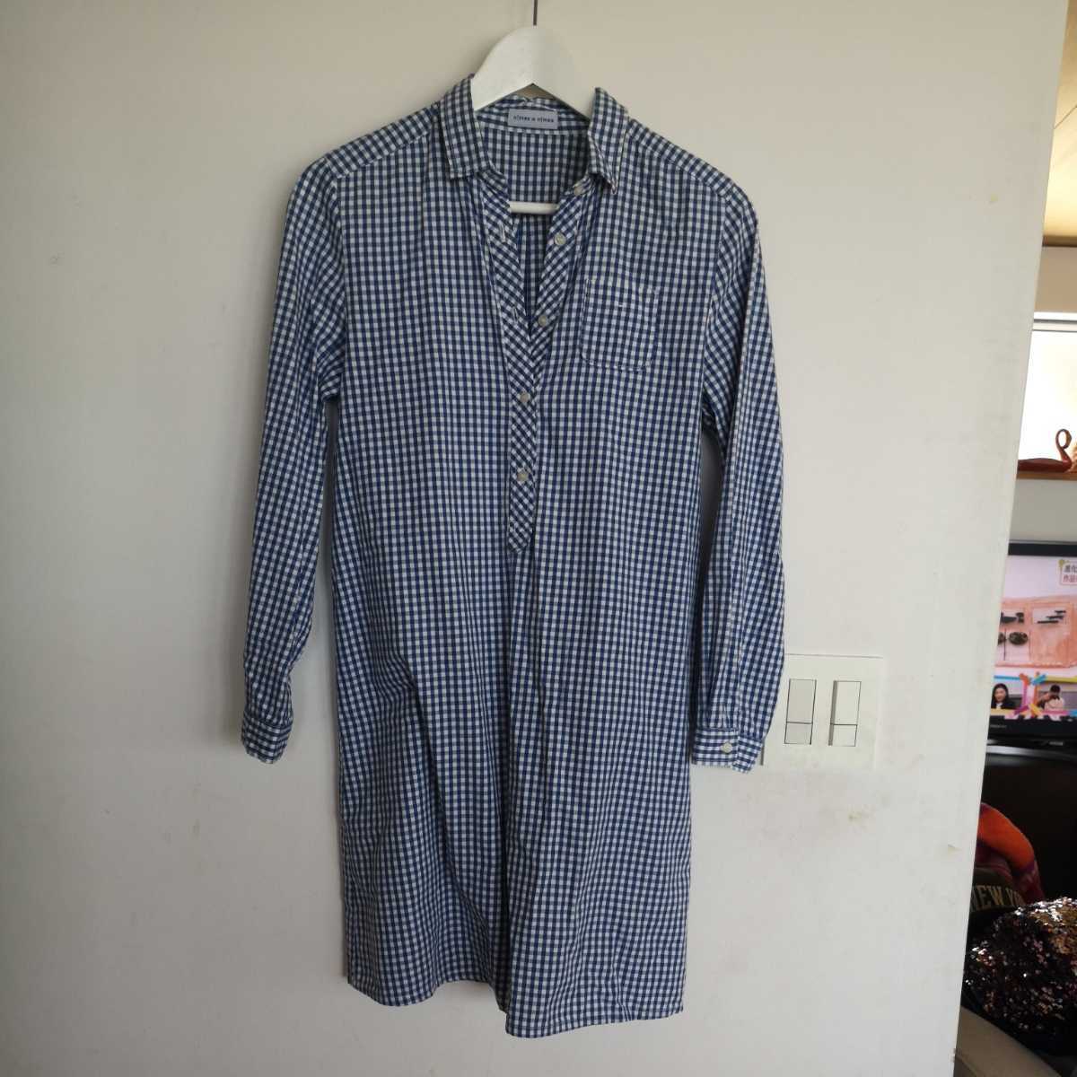 - ★送料無料★ 美品 ニーム nimes ギンガムチェック ワンピース ブルー シャツワンピース 38くらい ★
