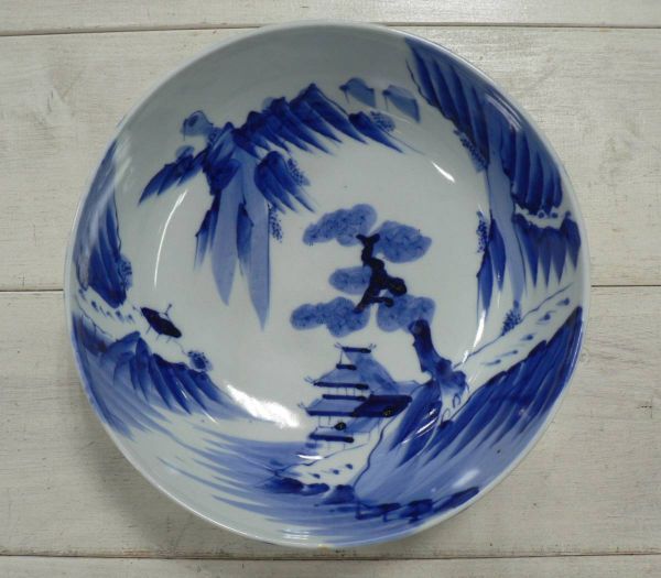 > ・ 鉢 ★Y572 山水 レトロ 骨董 アンティーク 印判 染付 江戸 明治 大正 昭和 レトロ食器