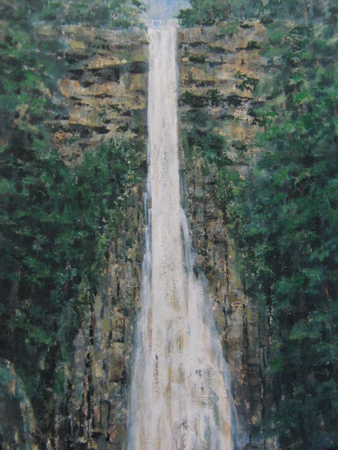 - 福島一二三、【那智の滝】、希少な大判額装用画集より、美品、日本人画家、新品額装付、送料込み